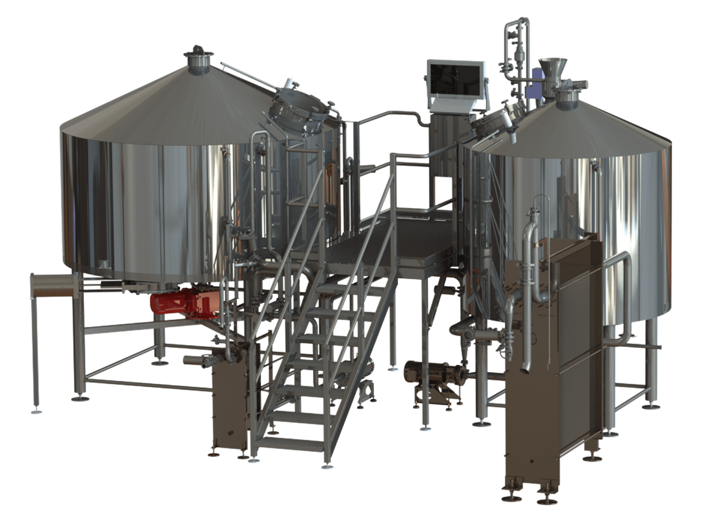 For single malt (Scotch) style whiskeys and other spirits distilled off the grain, a lauter tun with screens and a specialized mixer is used. The sugar-rich liquid that drains from the ports under the screens (wort) is then run through a heat exchanger before reaching the fermenter.